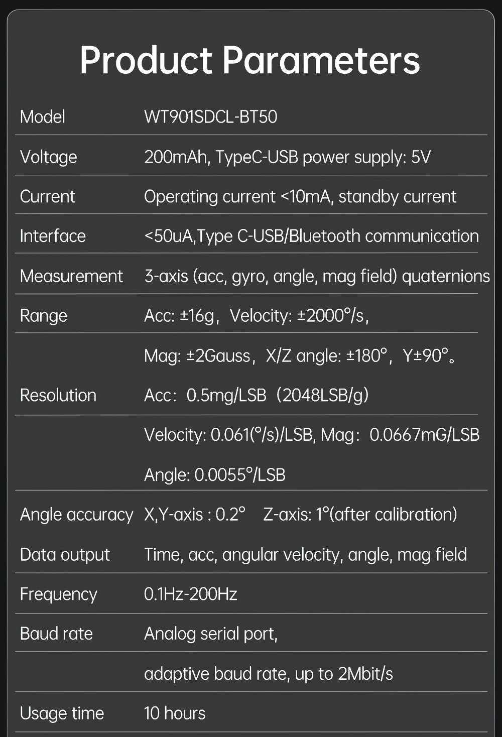 - [Comprehensive measurement] WT901SDCL integrates high-precision gyroscope, accelerometer, and geomagnetic field sensor.